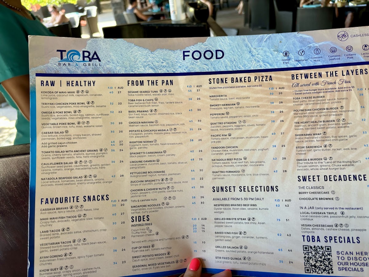 Welcome to Toba Bar and Grill, a culinary gem nestled in Sanasana, Fiji. This vibrant restaurant blends stunning ocean views with a lively atmosphere, featuring an infinity pool and live music that elevate your dining experience. The menu is a delightful mix of flavors, offering something for everyone—from hearty burgers and mouth-watering pizzas to vegetarian options.
